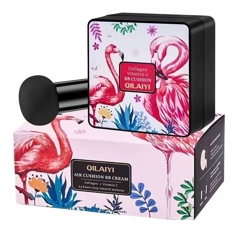 BB Cream Cushion cu efect de matifiere de la Qilaiyi ascunde în mod durabil porii, petele întunecate, ridurile, coșurile, roșeața și alte pete faciale. Textura sa este delicată și ușoară, hidratantă, respirabilă și răcoritoare.