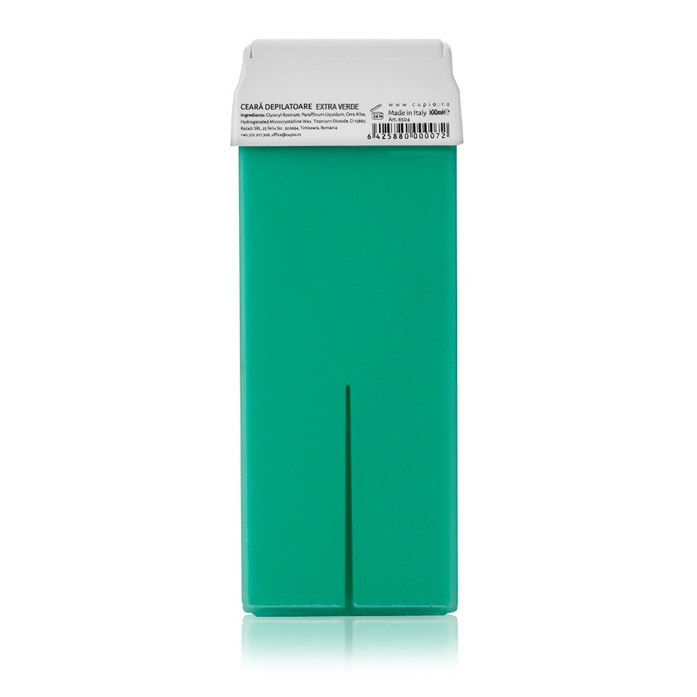Cupio Ceara epilat verde 100ml este o ceara de epilat pe baza de rasini naturale si ceara de albine pentru toate tipurile de piele, compatibila cu incalzitoarele de ceara(aparate de epilat). Obtineti o epilare delicata, confortabila, sigura si eficienta pe toate zonele corpului. Ideala pentru orice anotimp. I ncalziti 15-25 minute inainte de folosire. Nu folositi produsul pe zonele care prezinta iritatii, sensibilitate crescuta sau alte afectiuni dermatologice. Nu va expuneti pielea la soare sau radiatii UVA in urmatoarele 24 de ore de la epilare. Mod de utilizare: Inainte de epilare, asigurati-va ca pielea este curata si uscata. Intindeti ceara cu aplicatorul in sensul cresterii parului, pe zone de 16-18cm. Inainte de a aplica ceara, verificati daca aceasta are temperatura potrivita, iar in cazul in care nu corespunde, intrerupeti epilarea. Dupa ce ati intins ceara pe piele, aplicati o banda de epilat peste, presand bine cu palma pentru o aderenta cat mai buna. Indepartati banda de epilat in sens invers cresterii parului, printr-o miscare rapida si brusca. Repetati pasii pentru fiecare zona in parte. Dupa epilare, folositi ulei, gel sau balsam special. Rezerva de ceara pentru epilat de unica folosinta cu aplicator lat. Ceara de epilat pe baza de rasini naturale si ceara de albine pentru toate tipurile de piele, compatibila cu incalzitoarele de ceara(aparate de epilat). Obtineti o epilare delicata, confortabila, sigura si eficienta pe toate zonele corpului. Ideala pentru orice anotimp. Incalziti 15-25min inainte de folosire. Nu folositi produsul pe zonele care prezinta iritatii, sensibilitate crescuta sau alte afectiuni dermatologice. Nu va expuneti pielea la soare sau radiatii UVA in urmatoarele 24 de ore de la epilare. Cantitate : 100ml. Va garantam ca toate produsele achizitionate de pe site-ul nostru sunt originale. Declaratie de conformitate ProCosmetic ProCosmetic este distribuitor autorizat Cupio.