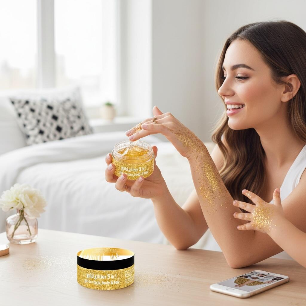 Pregateste-te de petrecere cu gelul sclipici Venita Gold! Un glitter fin, cu textura de gel, care se aplica ușor, se usuca rapid si lasa pe piele si in par un efect WOW, ca de carnaval. Poți folosi un singur strat pentru luciu discret sau mai multe straturi pentru un look super intens – tu decizi nivelul de stralucire.