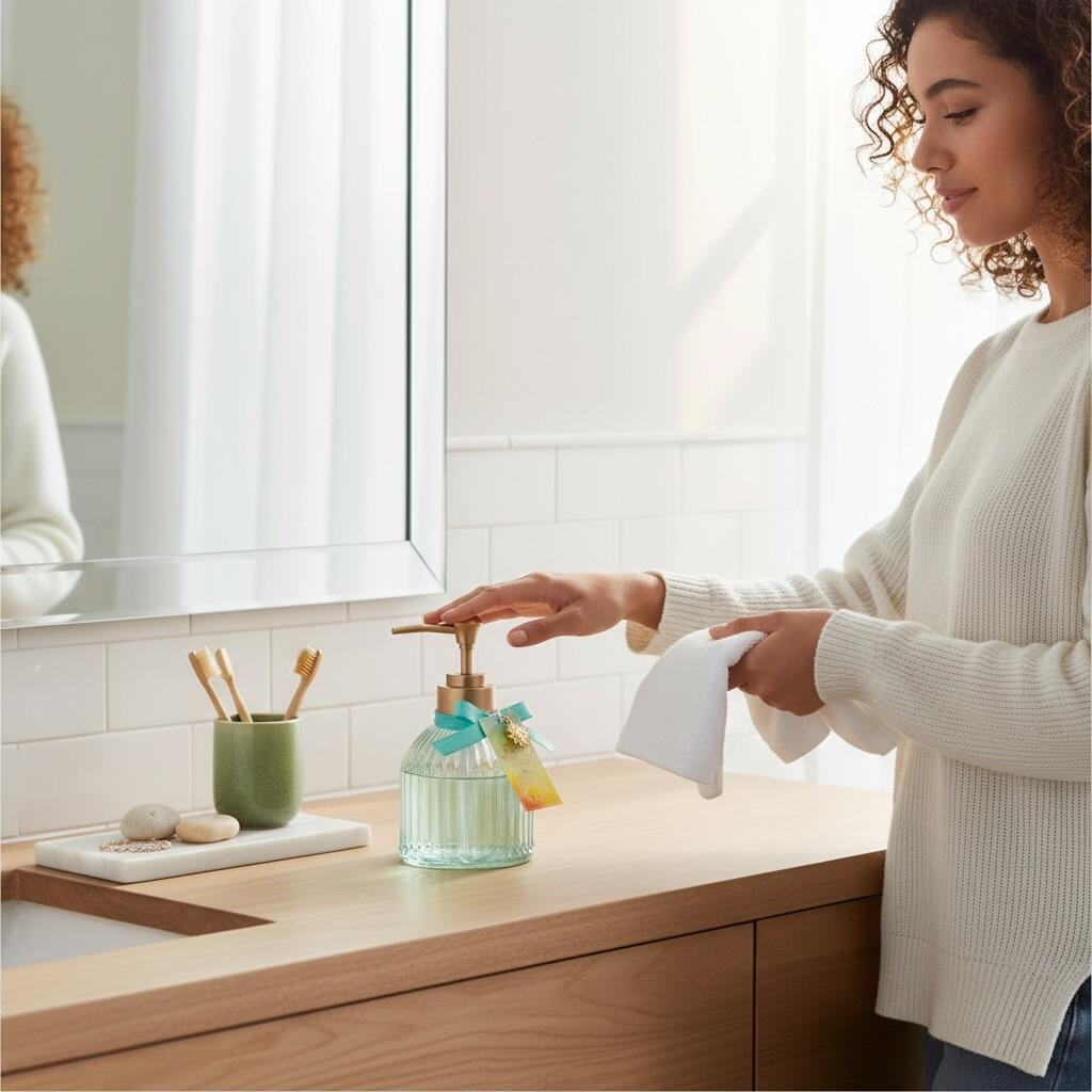 Dispenserul este completat de un pandantiv decorativ cu simbol solar, care adaugă un accent elegant și transformă produsul într-un element decorativ deosebit pentru baie. Potrivit atât pentru uz zilnic, cât și pentru a fi oferit cadou în sezonul de primăvară.