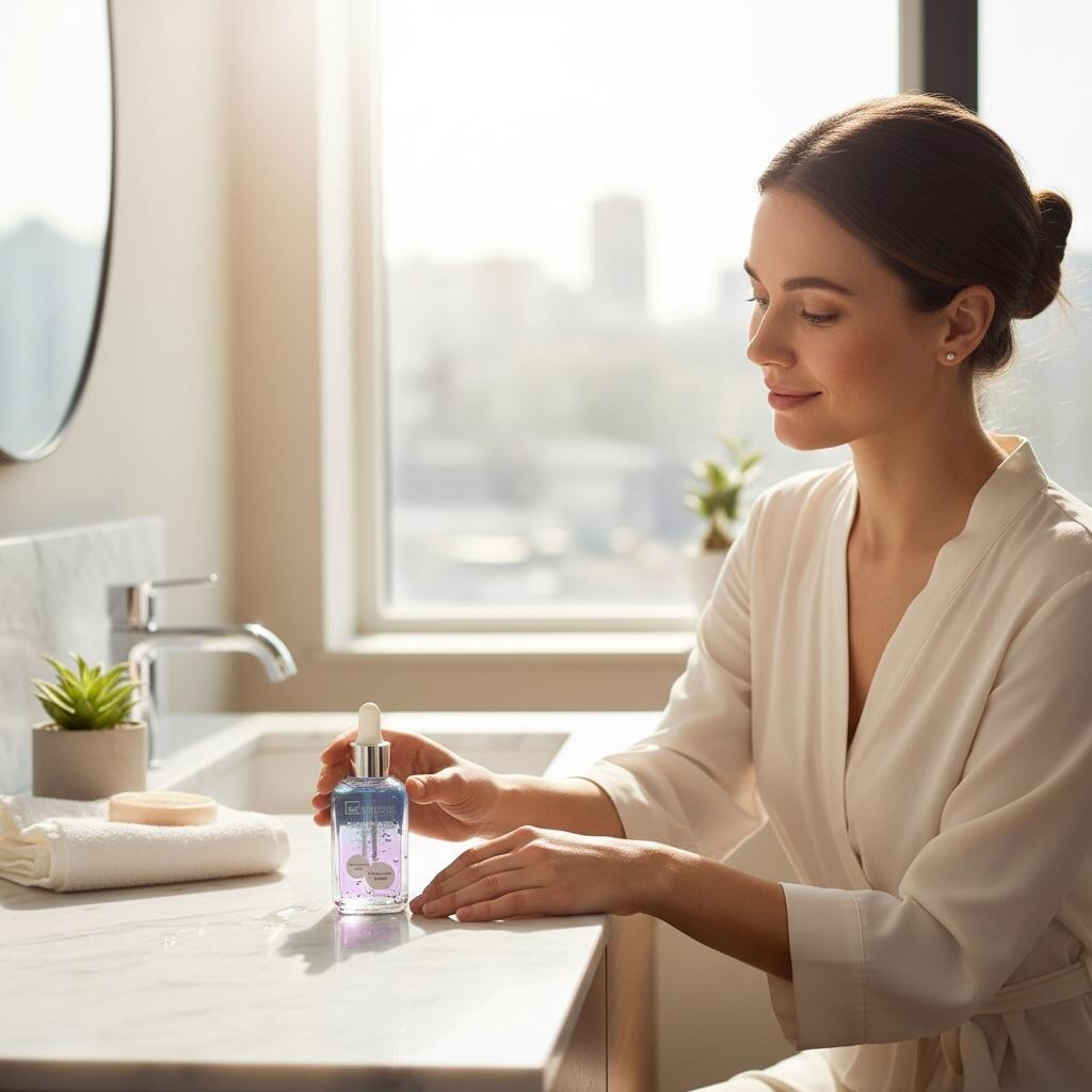 Aplică 3–4 picături pe tenul curat (față + gât).