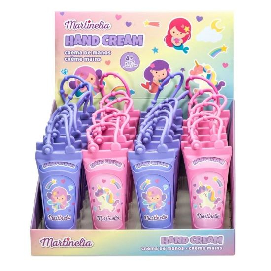 Crema de maini Martinelia – Crema de maini pentru copii cu glicerina si unt de shea care ingrijeste delicat mainile copiilor tai, lasand un parfum subtil, delicat. Ideala pentru ingrijirea mainilor in perioada rece. Setul contine 24 bucati a cate 30 ml Avertismente: Uz extern. Produsul nu este recomandat copiilor sub 3 ani.A se folosi sub supravegherea unui adult.Evitati contactul cu ochii. In cazul contactului cu ochii clatiti cu apa din abundenta. Depozitati in mediu uscat, ferit de lumina soarelui, la temperaturi intre 18-25 grade C, cu capacul inchis cu grija.
