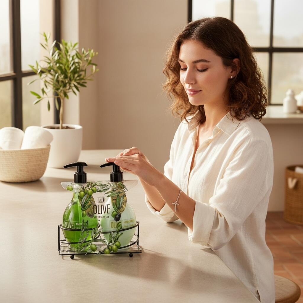 Setul Accentra Olive Hand Care este creat pentru îngrijirea zilnică a mâinilor, combinând proprietățile nutritive ale extractului de măsline cu texturi plăcute și parfum aromatic natural. Ideal pentru baie sau bucătărie, setul oferă atât curățare delicată, cât și hidratare intensă, lăsând pielea moale, catifelată și protejată.
