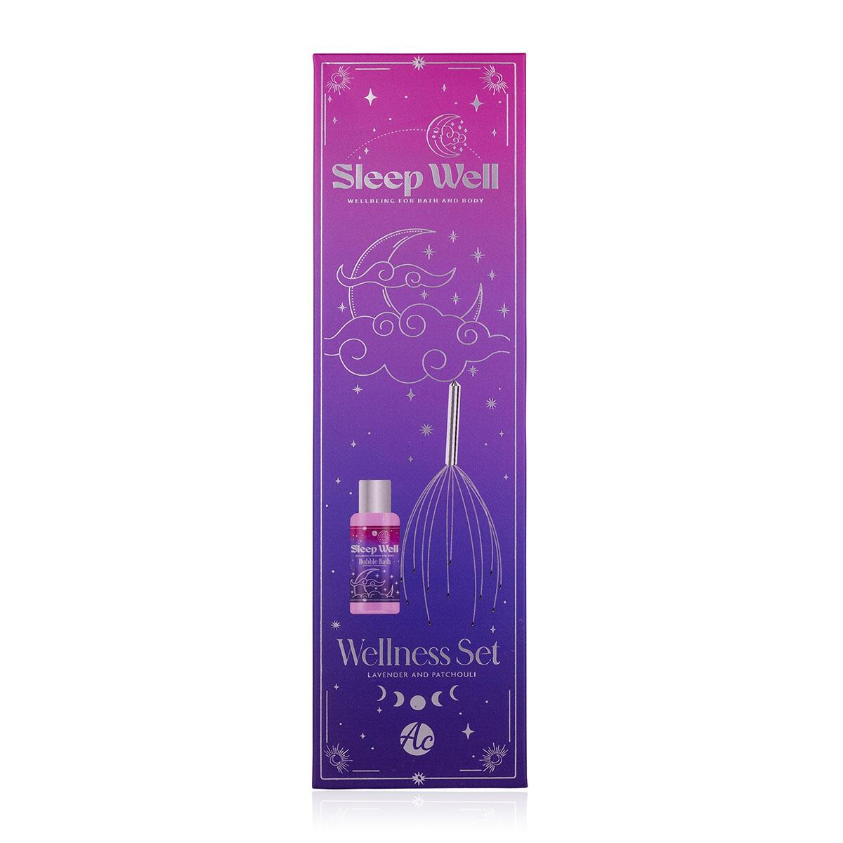 Setul wellness Sleep Well de la Accentra este conceput pentru momente de relaxare profundă și îngrijire personală. Conține o spumă de baie cu aromă calmantă de lavandă și patchouli, ideală pentru detensionare și relaxare, alături de un dispozitiv pentru masaj capilar care completează ritualul de wellness. Setul este ambalat într-o cutie cadou, fiind potrivit pentru oferire sau răsfăț personal.