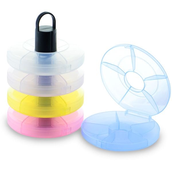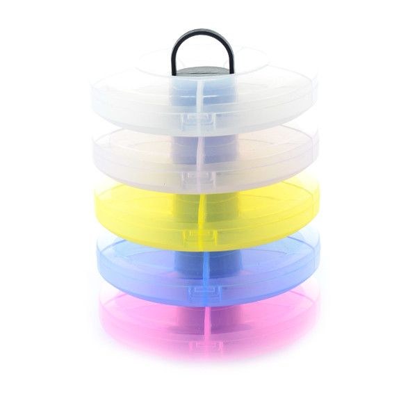 Cutie pentru pastrarea obiectelor de nail art, pentru pastrarea tips-urilor sau a altor obiecte de manichiura/pedichiura. Cutia de depozitare este foarte practica si este ideala pentru pastrare sau transport. Cutia de depozitare are 5 cutiute rotunde etajate. Fiecare cutiuta rotunda are la randul ei 5 compartimente. Diametru cutiuta rotunda: 12.5cm. Inaltime cutie: 15cm. Va garantam ca toate produsele achizitionate de pe site-ul nostru sunt originale. Declaratie de conformitate ProCosmetic.ro Procosmetic.ro este distribuitor autorizat Cupio.