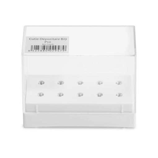 Cutie din plexi speciala pentru depozitarea rezervelor de freza electrica. Cutia este prevazuta cu capac pentru depozitarea in conditii optime a rezervelor. Cutia poate depozita 10 bituri pentru freza electrica. Cutia se livreaza fara rezervele de freza electrica din poza de prezentare. Dimensiuni: 8x3.5x6cm. Toate produsele achizitionate de pe site-ul nostru sunt originale. Declaratie de conformitate ProCosmetic. Procosmetic.ro este distribuitor autorizat Cupio.