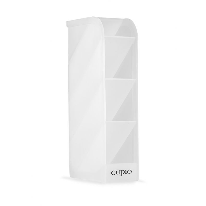 Suportul de masa pentru ustensile este ideal pentru organizarea instrumentelor de manichiura/ pedichiura (pensule, instrumente cuticule, capete de freza, instrumente punctatoare, etc.) sau de make-up (creioane buze/ochi, eyeliner, mascara, etc.). Organizatorul este structurat pe 4 nivele. Inaltime: 25cm. Lungime: 9cm. Latime: 4.5cm. Va garantam ca toate produsele achizitionate de pe site-ul nostru sunt originale. Declaratie de conformitate ProCosmetic.ro Procosmetic.ro este distribuitor autorizat Cupio.
