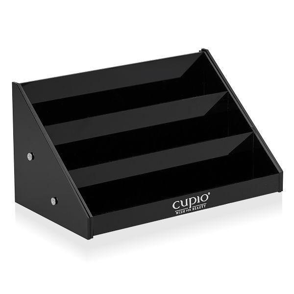 Suportul din plexiglass este ideal pentru expunerea de oje, geluri uv, vopsele acrilice sau alte accesorii. Este recomandat atat pentru saloane, cat si pentru acasa. Datorita celor trei raftulete este foarte practic si permite expunerea a aproximativ 18 bucati sau a altor accesorii. Dimensiune : - inaltime: 10.5cm; - lungime: 21.5cm. Procosmetic.ro este distribuitor autorizat Cupio. Va garantam ca toate produsele achizitionate de pe site-ul nostru sunt originale. Declaratie de conformitate ProCosmetic.ro
