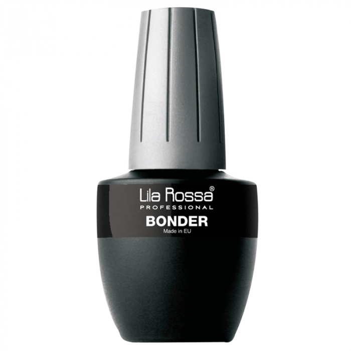 Bonder Gel Lila Rossa, 15 ml. Este un agent de adeziune fara acid si are rol de echilibrare a PH-ului unghiei. Se aplica in strat subtire ca un lac de unghii si se usuca la aer. Actioneaza in 3-5 secunde, pregatind unghia naturala pentru aplicarea acrylului sau a gelului UV de baza sau constructie/modelare. Bonder-ul de la Lila Rossa Professional asigura o mai mare adeziune a gelului sau acrylului pe unghia naturala si se aplica dupa primer.