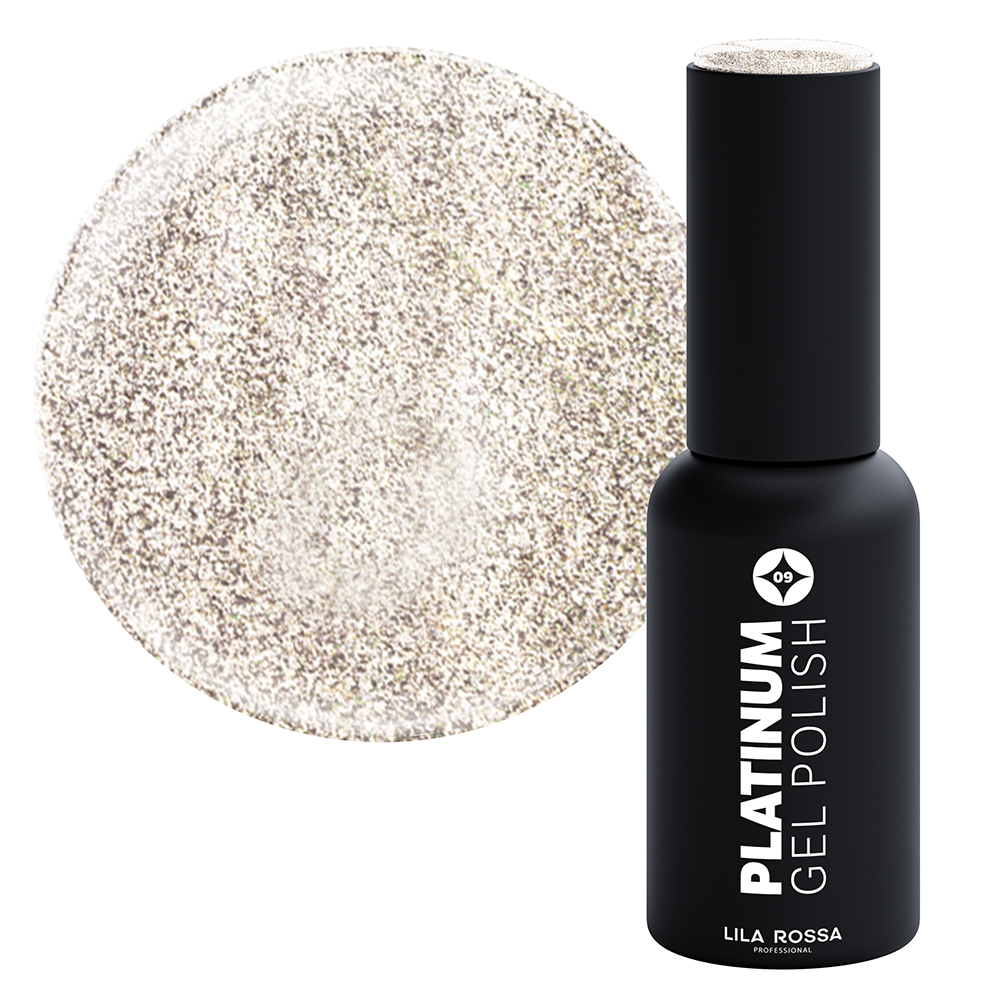 Oja semipermanenta cu o consistenta densa imbogatita cu glitter metalic ofera acoperire completa unghiilor naturale sau celor tehnice. Colectia Platinum vine intr-o varietate de nuante cu o sclipire puternica si luciu intens. Se poate aplica peste orice bazagel de constructie sau acril. - Se usuca in lampa LED (60 sec.) sau in lampa UV (120) Mod de utilizare: - Folositi un instrument pentru a impinge cuticula. - Indepartati cuticula cu o forfecuta Lila Rossa cu varful curbat sau freza cu capat pentru cuticule. - Piliti unghia folosind o pila buffer Lila Rossa pentru a indeparta luciul unghiei naturale. - Indepartati excesul de praf ramas in urma pilirii cu un pamatuf. - Aplicati un strat subtire de Primer evitand zona cuticulei. Uscati 60 de secunde la aer. - Pentru extra aderenta aplicati un strat subtire de Ultrabond.Uscati 60 de secunde la aer. - Aplicati un strat subtire de Base Coatpolimerizati 60 de secunde in lampa LED sau 120 de secunde in lampa UV. - Aplicati un strat de oja semipermanenta Platinumpolimerizati 60 de secunde in lampa LED sau 120 de secunde in lampa UV. - Reveniti cu un al doilea strat de oja semipermanenta daca este necesar. - Sigilati unghiile cu un strat subtire de top coat fara degresare de la Lila Rossa. - Uscati la lampa UV 120 secunde sau lampa led 60 secunde.