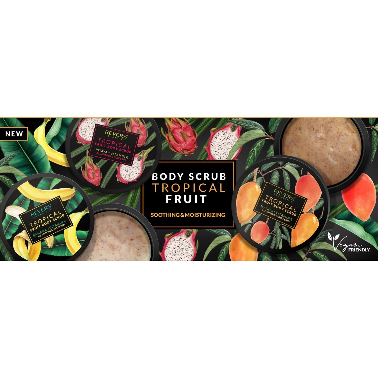 Scrub de corp cu granule grosiere cu extract de mango FRUCTE TROPICALE imbogatit cu VITAMINA E, alantoina si glicerinaActiune: Decojeste si netezeste epiderma. Unge, catifelează și tonifică. Lasa pielea bine ingrijita si parfumata.Mod de utilizare: Se aplica pe pielea umeda a corpului, se maseaza usor. Clătiți bine cu apă caldă.Particule de peeling 100% naturale - semințele de măsline măcinate în combinație cu particule de orez și semințe de afine decojesc intens și netezesc instantaneu pielea.Extract de mango - actioneaza ca un emolient natural, hidrateaza pielea uscata si lasa. Are proprietăți antioxidante puternice. Are capacitatea de a elimina radicalii liberi, protejând astfel pielea împotriva degradării celulare. Ajută la menținerea pielii elastice și hidratate.