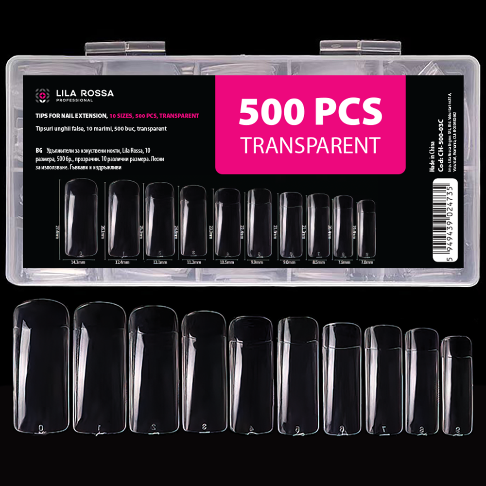 Lila Rossa Tipsuri unghii false 500 buc, Lila Rossa, Transparent