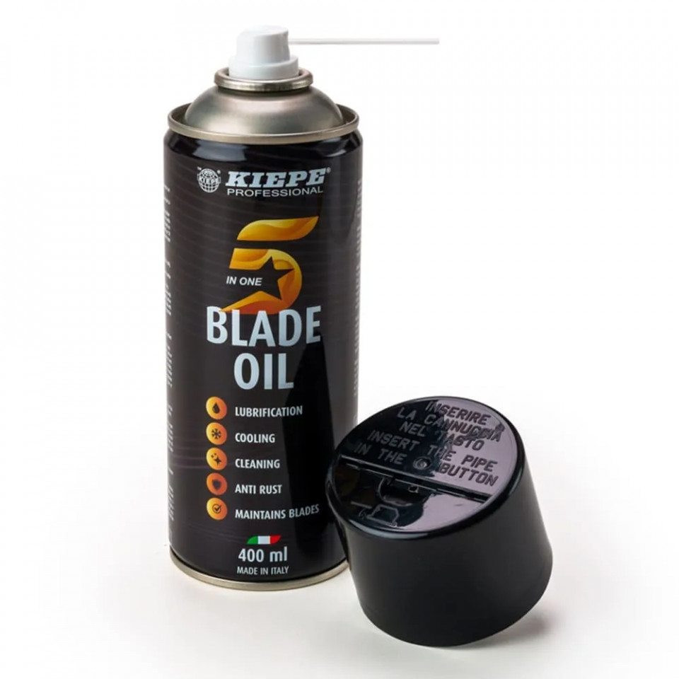 Kiepe Professional Spray profesional 5in1 pentru cutitele masinilor de tuns Blade Oil 400ml este unul dintre produsele indispensabile intr-o frizerie. Lubrifiaza, raceste, curata, protejeaza impotriva ruginii si sporeste longevitatea lamelor de tuns. O solutie ideala pentru o taiere precisa si o intretinere eficienta. Ofera o mare usurinta in utilizare, formand o pelicula subtire lubrifianta ce reduce uzura si mentine lamele mult timp ascutite. Curata eficient prin presiunea eliberata si indeparteaza praful, murdaria si firele de par ascunse intre lamelele masinii. In functie de intensitatea utilizarii masinilor, se va folosi dupa fiecare folosire a masinii sau cel putin zilnic. Se pulverizeaza direct pe lamele cutitului in timp ce acestea sunt in miscare, de la o distanta de 10cm. Se pulverizeaza continuu cel putin 5 secunde. Se lasa sa se usuce. Procosmetic.ro este distribuitor autorizat Kiepe Professional. Toate produsele achizitionate de pe site-ul nostru sunt originale. Declaratie de conformitate ProCosmetic.